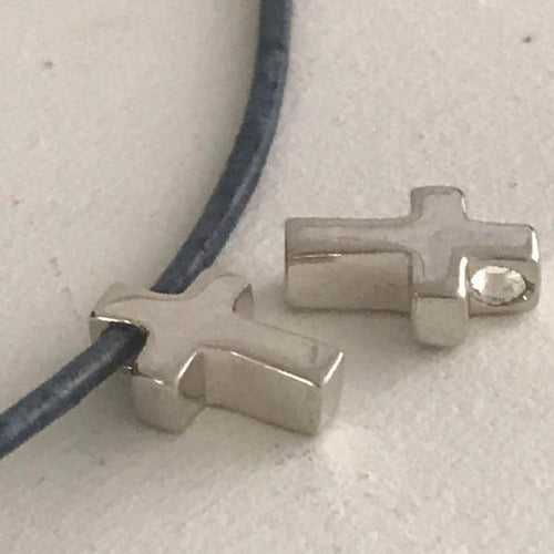 1 Sterling Silver Cross Bead - Chunky - Smooth and Shiny - Small Beading Stringing Design 9mm x 2mm Hole - Legacy Silver Supplies MB172
